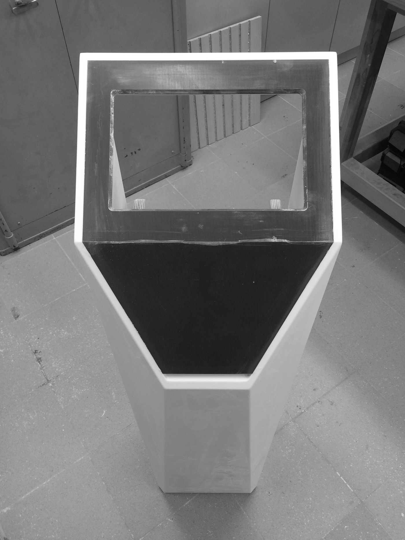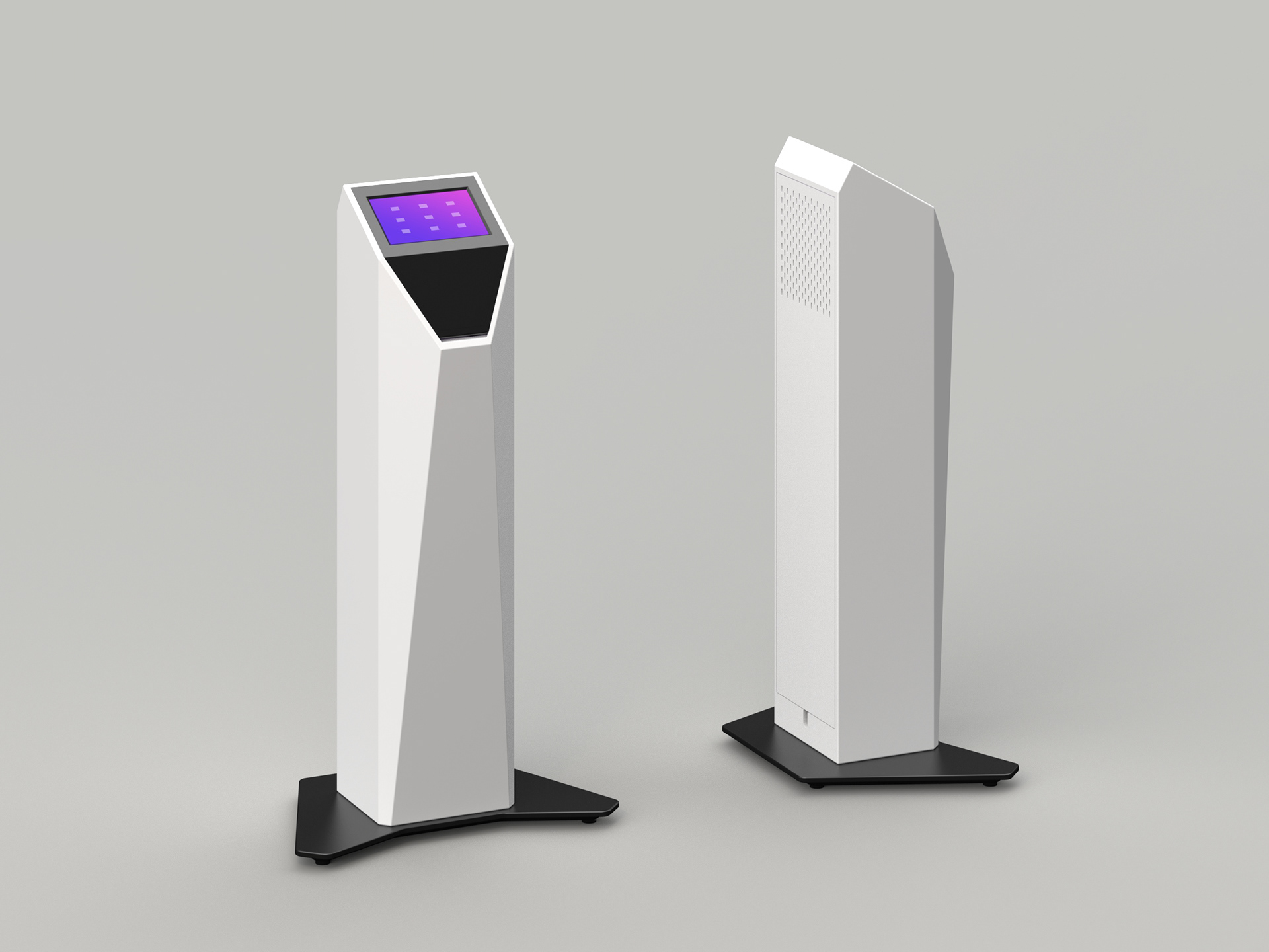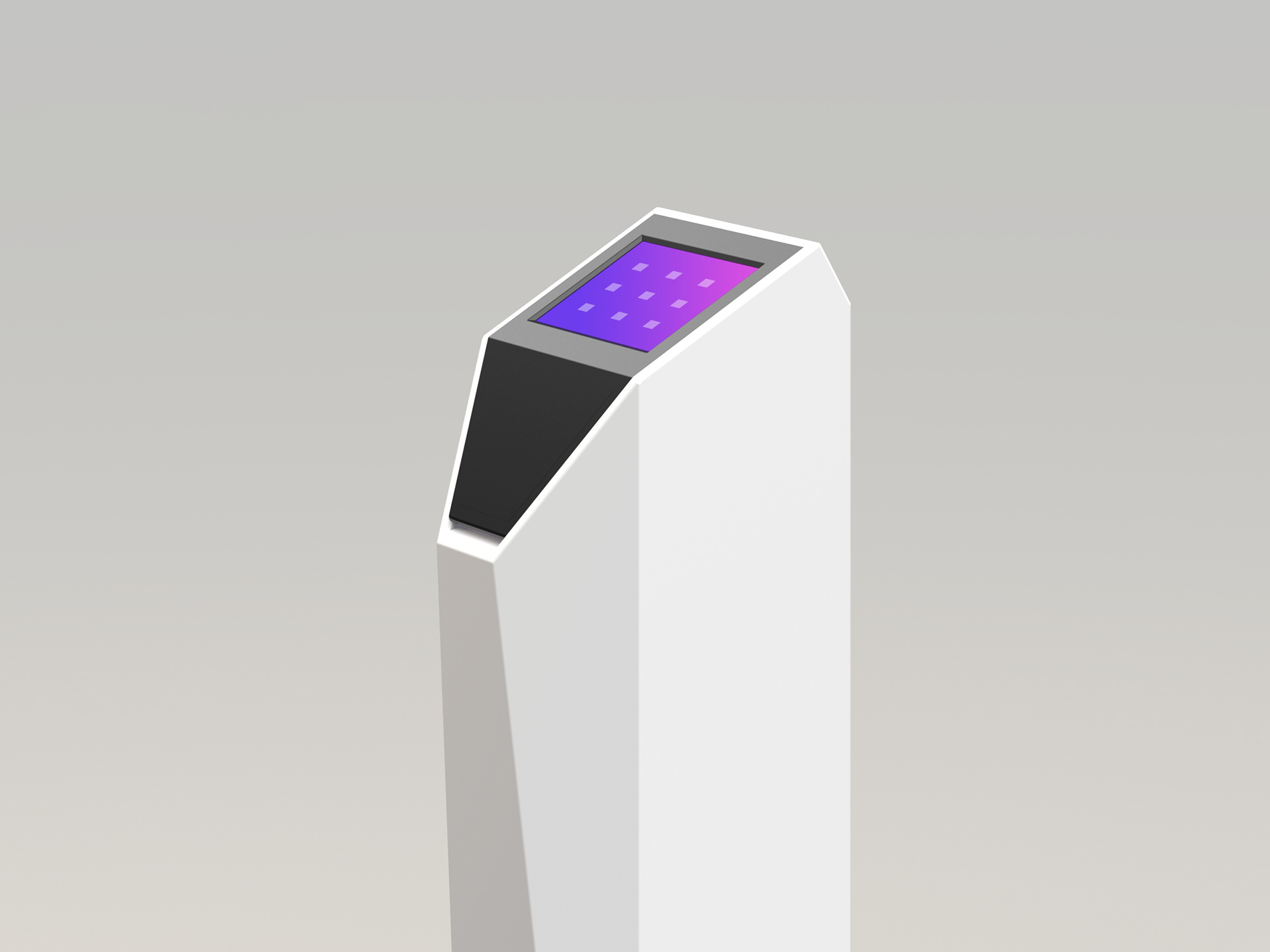 Solid surface kiosk cover design featuring an antibacterial, easy-to-clean finish. Ideal for high-traffic environments and client-facing applications. Modern look with exceptional long-term durability.